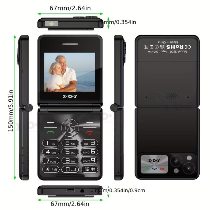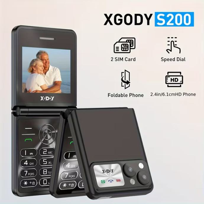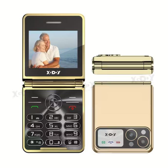 XGODY Preklopni mobitel, zlatno-crni s velikim tipkama
