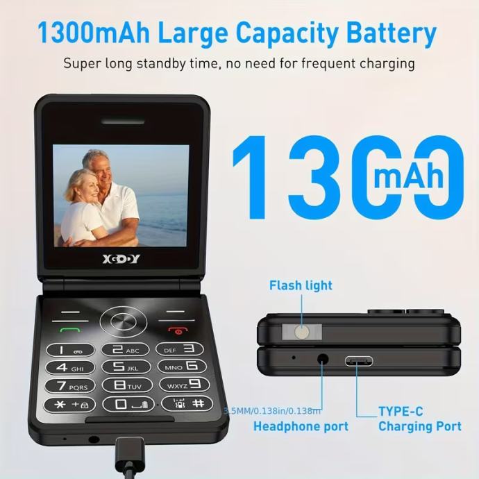XGODY Preklopni mobitel, zlatno-crni s velikim tipkama, baterija od 1300 mAh, glasan zvuk, kabel za punjenje tipa C, otključani stariji mobitel s 2,4-inčnim zaslonom u boji, GSM mreža, dvije SIM kartice, dual standby, brzo biranje, GSM dvije SIM kartice