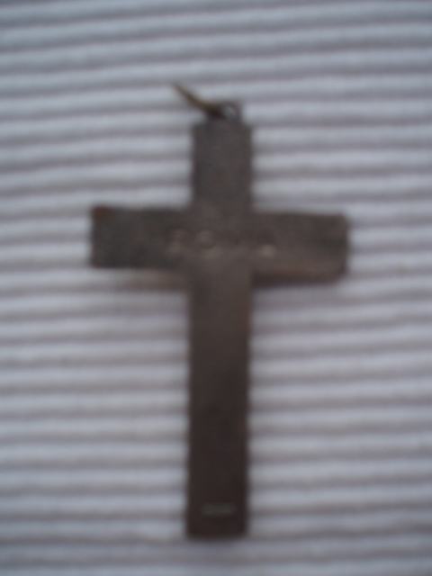 krasan privjesak u obliku križa sa motivom Isusa na križu, na poleđini natpis Roma
