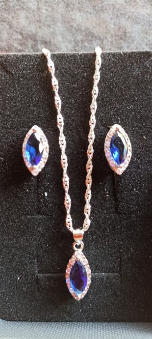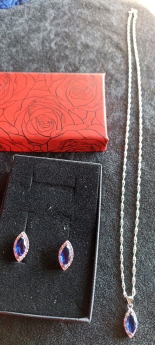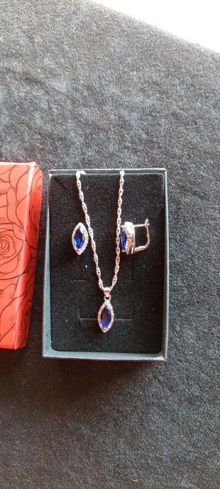 Lot se sastoji od naušnica, privjeska sa plavim i prozirnim cirkonima, te lančić 50 cm dužine.