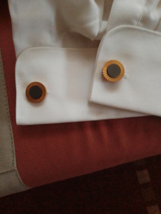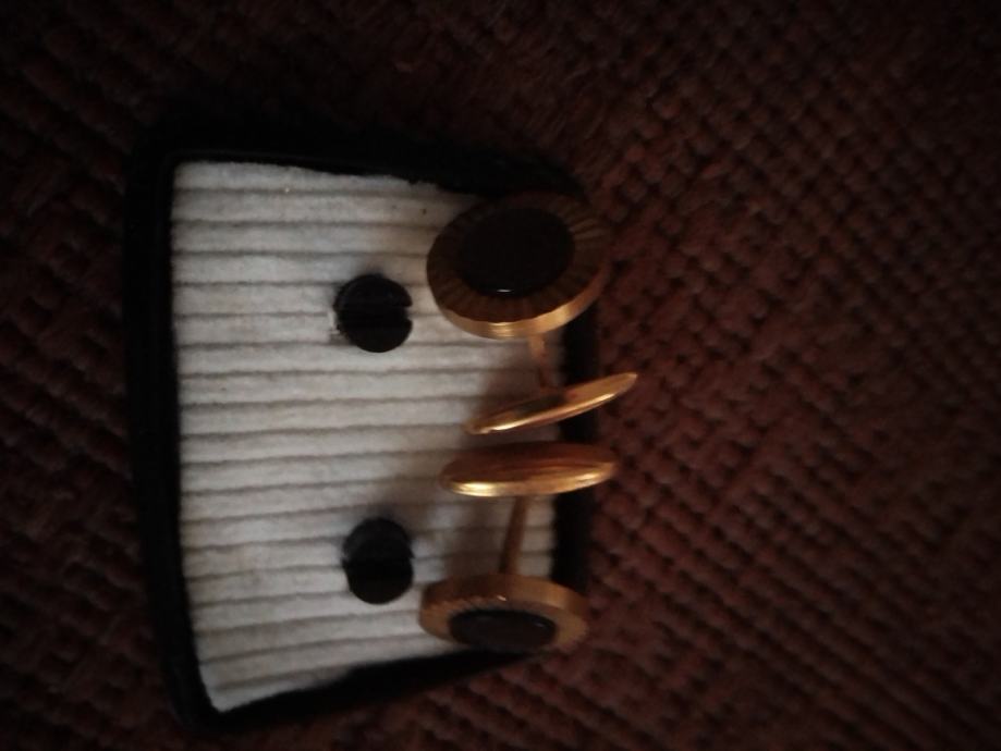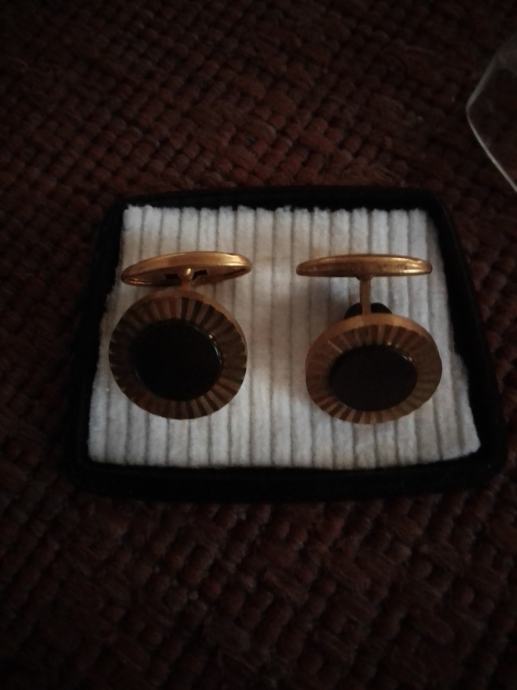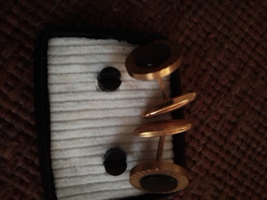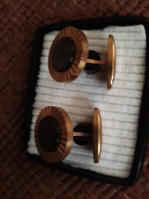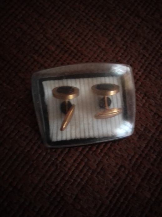 Stare elegantne manzete za kosulju,zlatne boje sa crnim kamenom u sredini.Stare su preko 70 godina ,kupljene za vrijeme Jugoslavije u zlatarni Majdanpek.Bile od mog djeda, Nošene u iznimnim situacijama poput svatova ,krstitki ili drugih sličnih domijenaka,kupac ih dobije u originalnoj kutiji,svaka ima 3 grama.Molim slati poruke na Viber ili Njuskalo, ili nazovite na broj 097-6601365 ,za sve informacije.Manzete su od mesinga,a iz vana su pozlačene 14 K zlatom( provjereno kod zlatara). Šaljem Tiskom, Poštom, Autobusom ili u dogovoru sa kupcem.Vidi slike!!