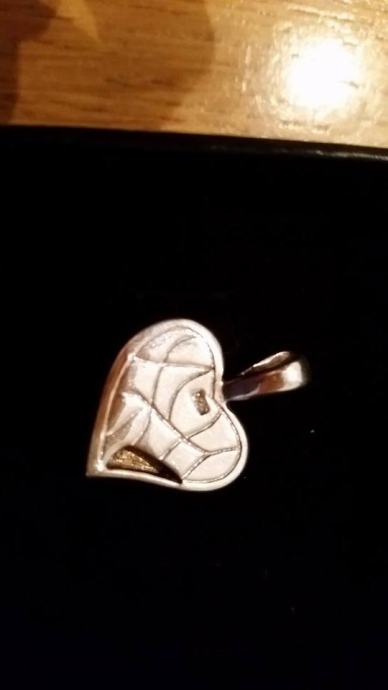 Privjesak srce, srebro, 925, na cirkone i sa sedefom, nedostaje jedan cirkon ali to se moze rijesiti u zlatarnama za sitne novce.