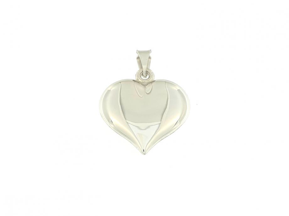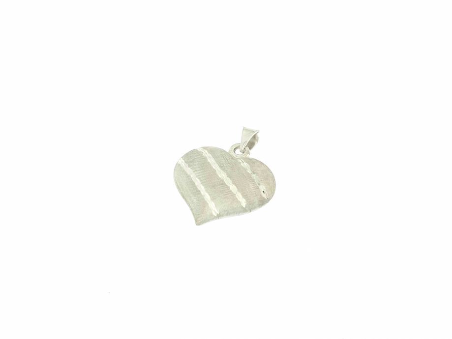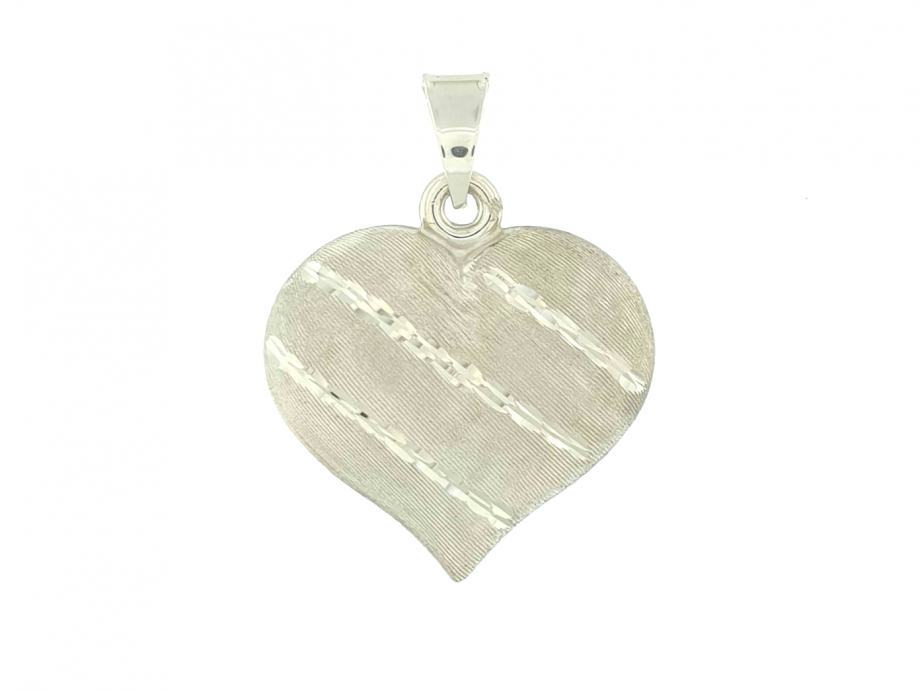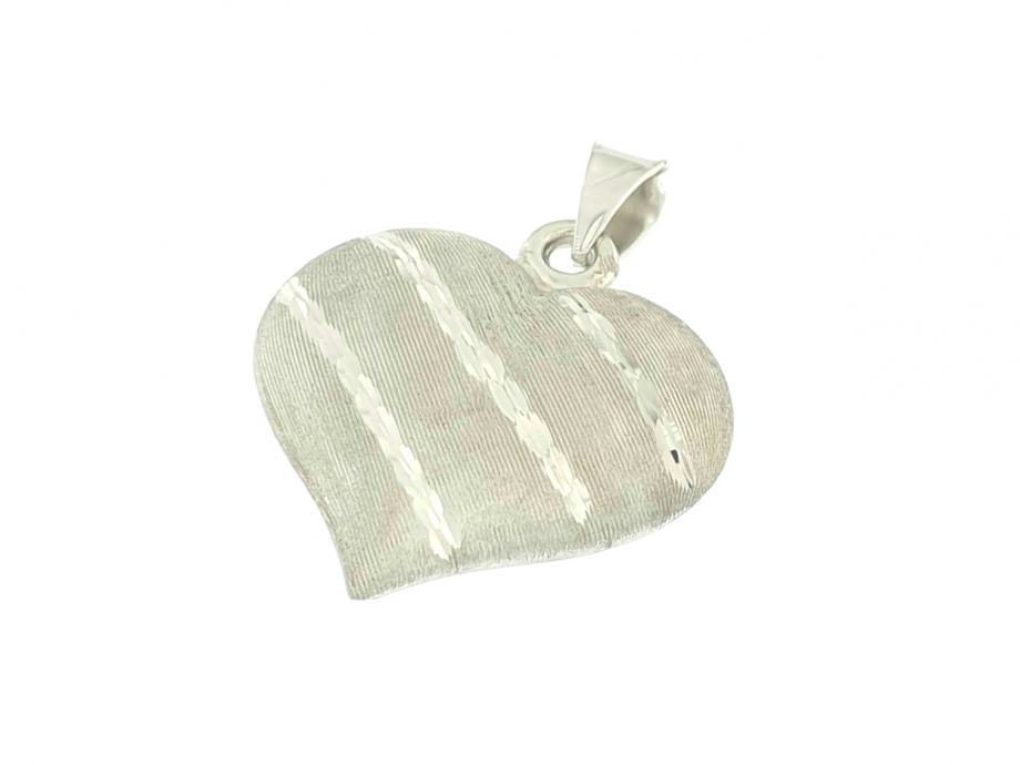 Zlatni privjesak srce, bijelo zlato 14K, štambilj 585, trokutasta karika, jedna strana mat s tri dijamantne linije, druga strana glat.