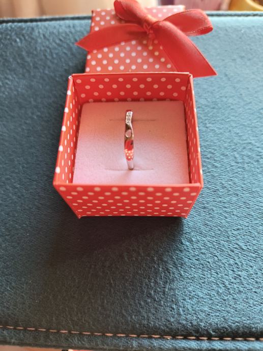 Predivan prsten sa sitnim cirkonima i urezanim srcem, vel.16 i 18 mm.