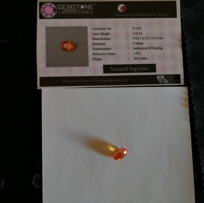 Prirodni safir 3.35 CT certificiran dragi kamen.