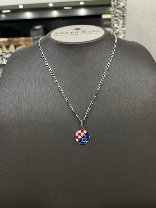 Srebrni privjesak izrađen od srebra finoće 925/1000. Privjesak je rodiniran što mu daje visoki sjaj te duži vijek trajanja jer Rodij štiti srebro od oksidacije.