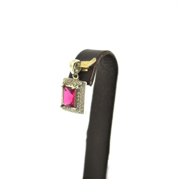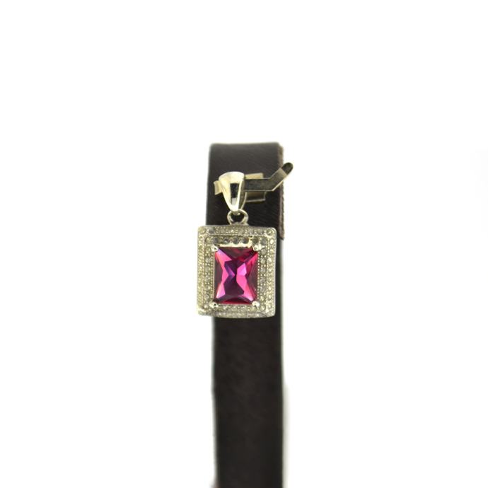 Prodaje se srebrni privjesak kockasti sa rozim kamenom i cirkonima 2g .925