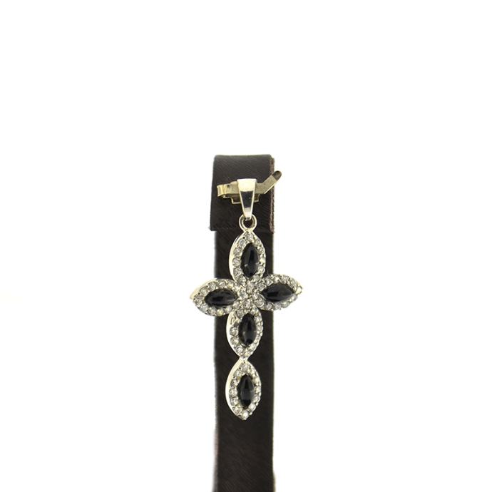 SREBRNI PRIVJESAK KRIŽ SA CRNIM KAMENIMA 3,02g .925, R1, RATE!