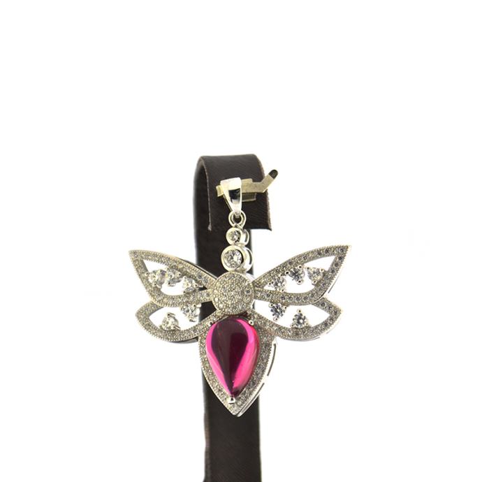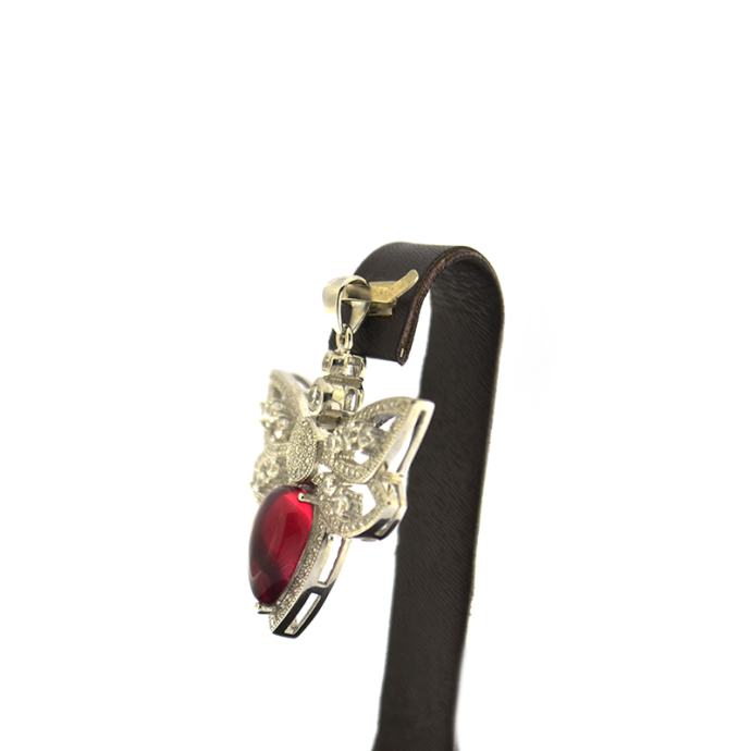 SREBRNI PRIVJESAK LEPTIR SA CRVENIM KAMENOM 9,54g .925, R1, RATE!