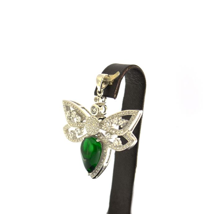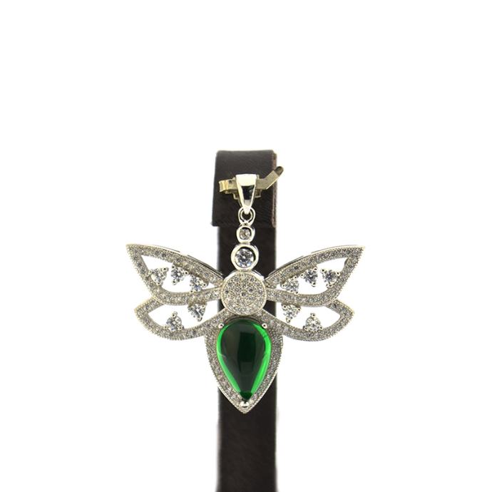 SREBRNI PRIVJESAK LEPTIR SA ZELENIM KAMENOM 9,44g .925, R1, RATE!