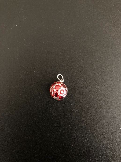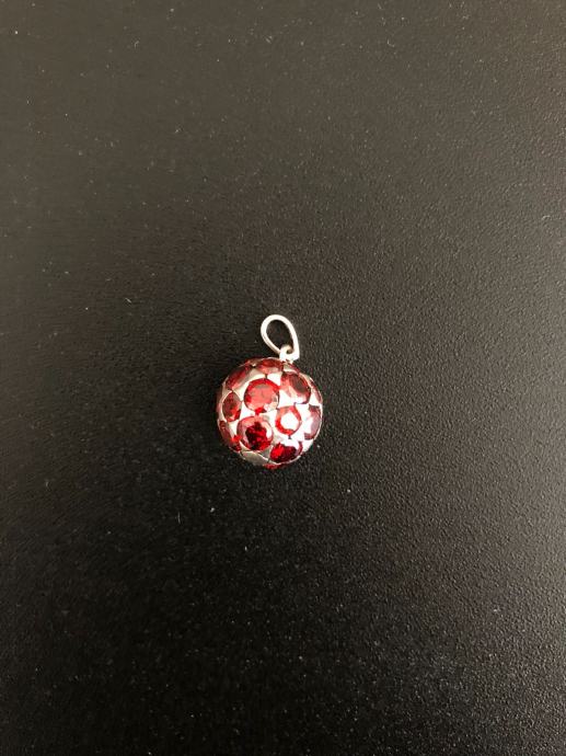 Prodaje se srebrni privjesak lopta sa crvenim kamenima 7,71g .925, POVOLJNO!