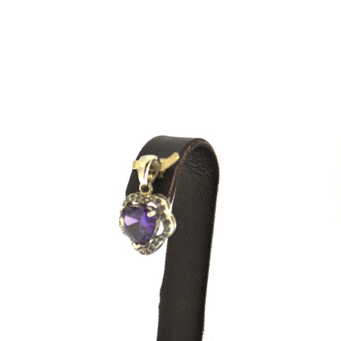 Prodaje se srebrni privjesak srce sa ljubičastim kamenom i cirkonima 2,16g .925, POVOLJNO!