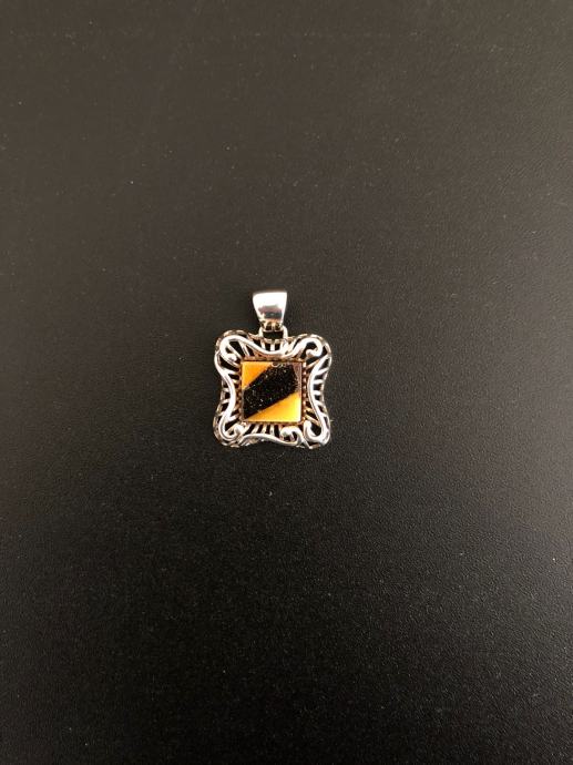 Prodaje se srebrni privjesak sa žutim i smeđim kamenom 6,63g .925