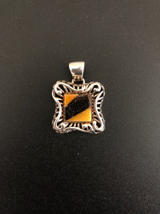 SREBRNI PRIVJESAK SA ŽUTIM I SMEĐIM KAMENOM 6,63g,R1,RATE,POVOLJNO!