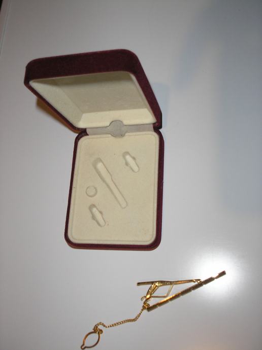 Štipaljka za kravatu, pise na njoj 24 kgf, Made in Korea, nije cijela zlatna, ali određeni dio štipaljke je od zlata, ne znam tocno koliko! Štipaljka ima masu 8 grama! Moguć dogovor oko cijene!