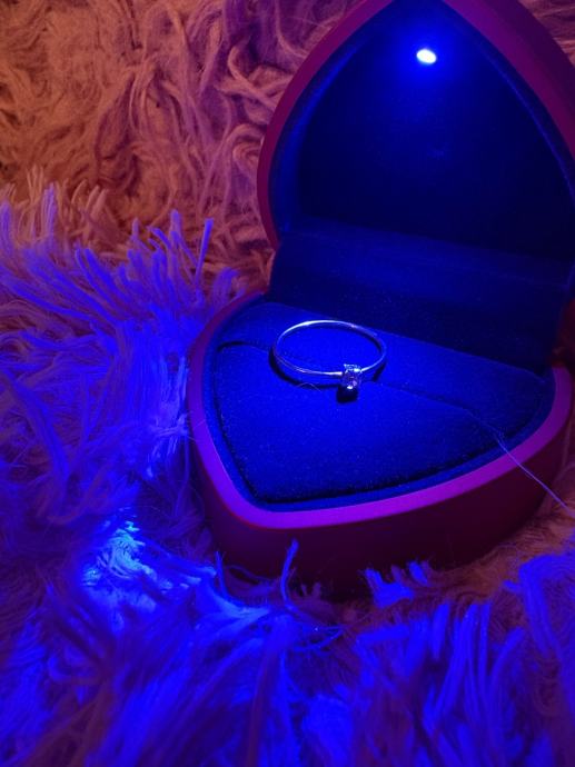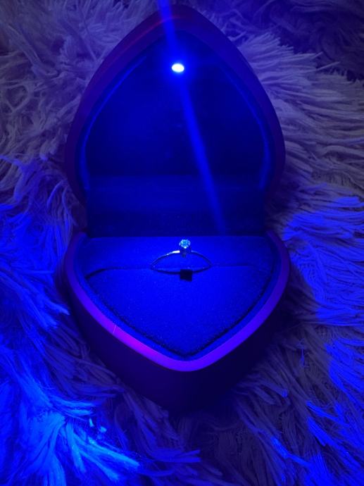 Prodajem prekrasan ženski prsten u obliku srca s elegantnim detaljima. Prsten dolazi u kvalitetnoj kutiji u obliku srca s LED osvjetljenjem, što ga čini odličnom idejom za poklon. Materijal je bižuterija, a prsten je potpuno nov bez etikete.