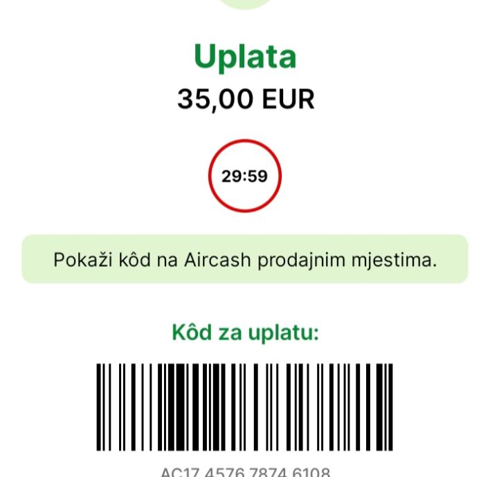 Samo uz uplatu na Aircash ,tek tada šaljem ..