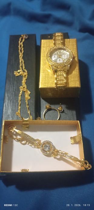 Ženski sat+lančić,prsten,narukvica,naušnice + 2 ukrasne kutije.