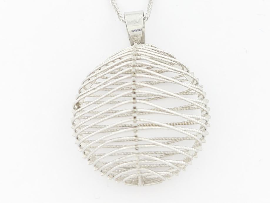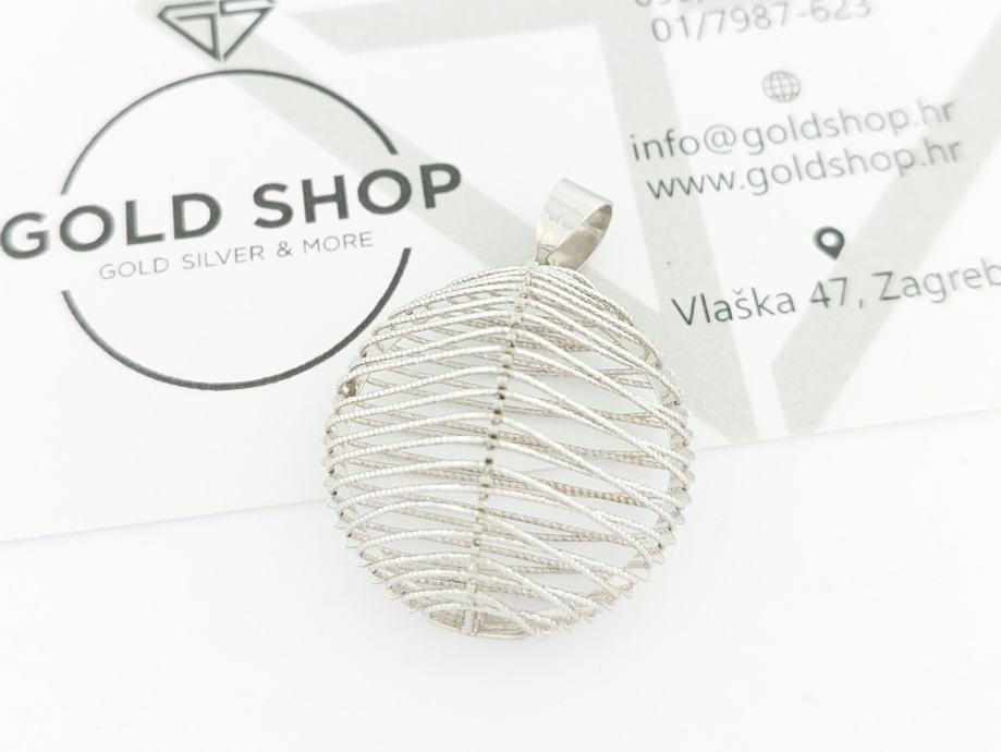 Zlatni privjesak "polukugla", filigranski, bijelo zlato 14K, žig 585, trokutasta karika.