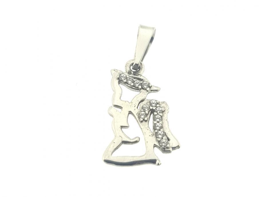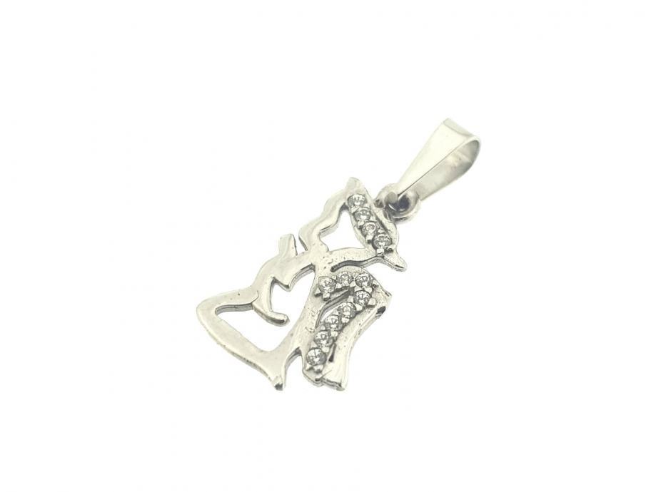 Zlatni privjesak anđeo, bijelo zlato 14K, žig 585, bijeli cirkoni, trokutasta karika.