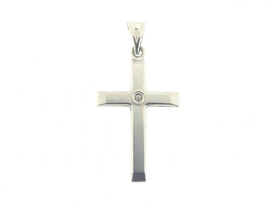 Zlatni privjesak križić, bijelo zlato 14K, bijeli cirkon, žig 585, trokutasta karika za lančić.