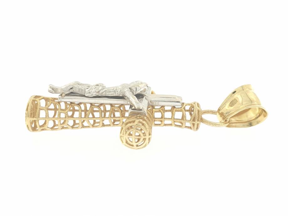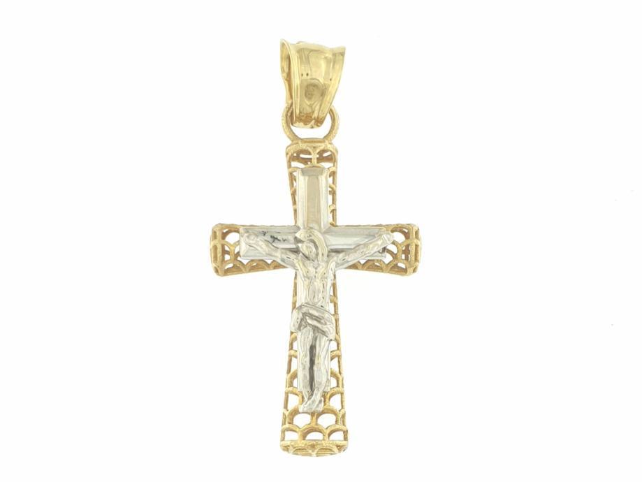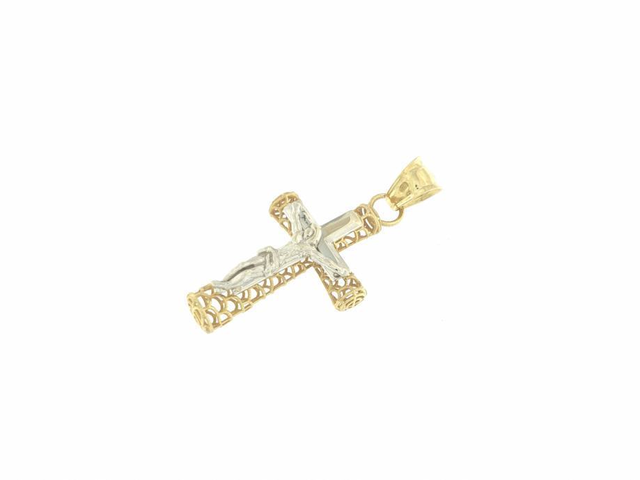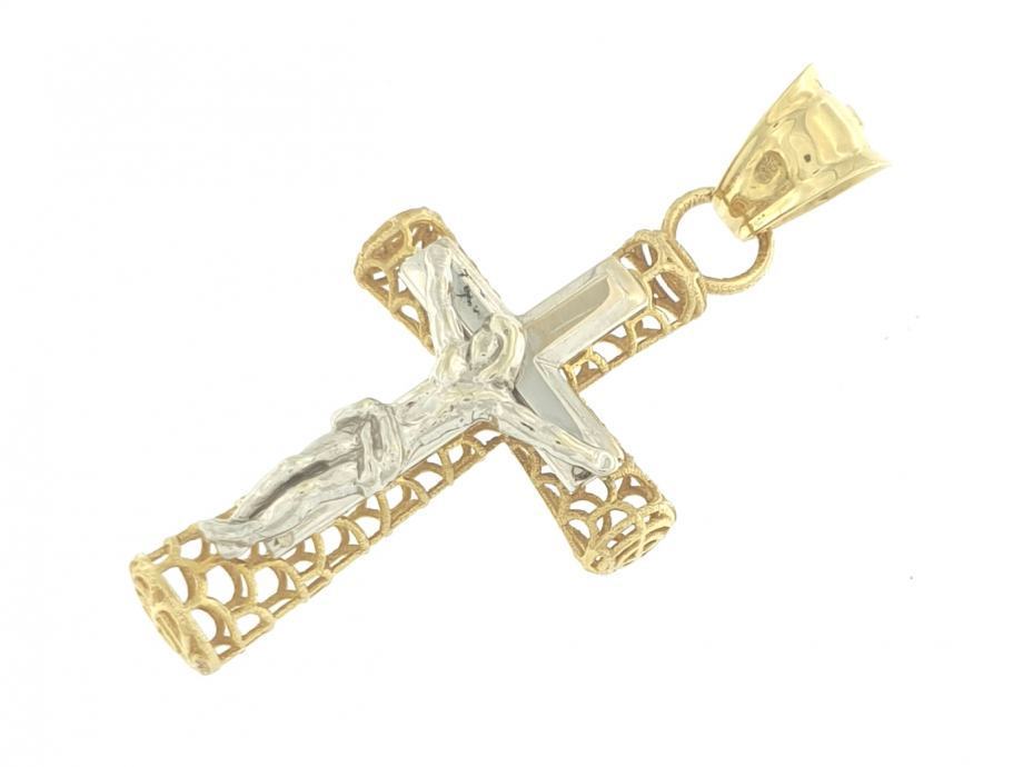 Zlatni privjesak raspelo, kombinacija žuto-bijelo zlato 14K, žig 585, mrežasto.
