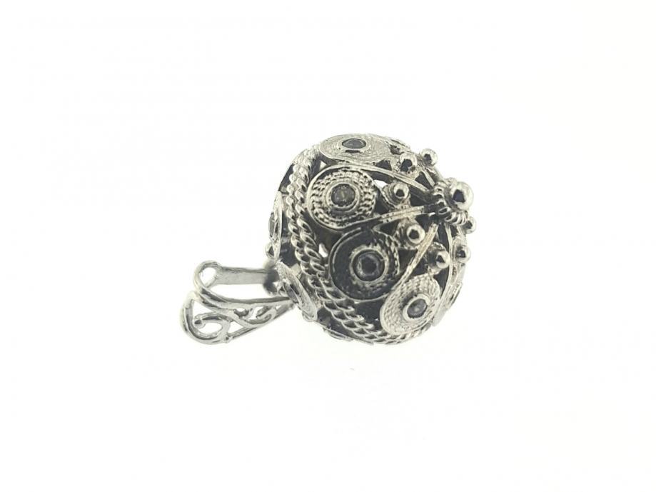 Zlatni privjesak šibenski botun, kuglica s cirkonima, hrvatski tradicijski dalmatinski nakit, bijelo zlato 14K, žig 585, trokutasta karika.
