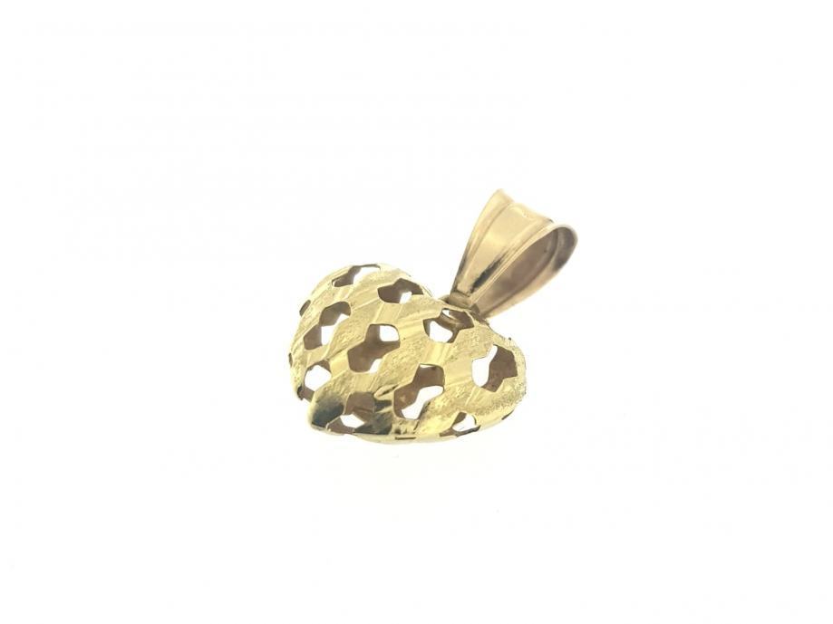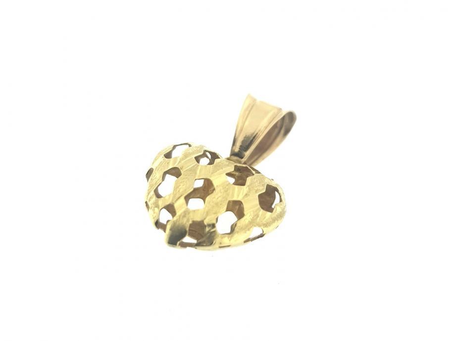 Zlatni privjesak srce, šupljikavo, žuto zlato 14K, žig 585, trokutasta karika.