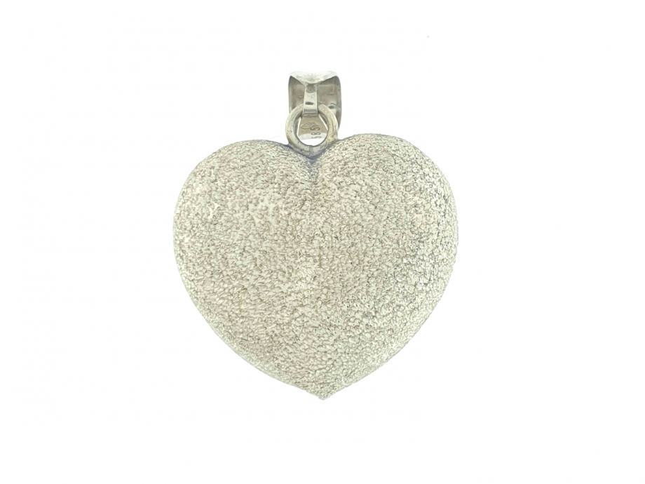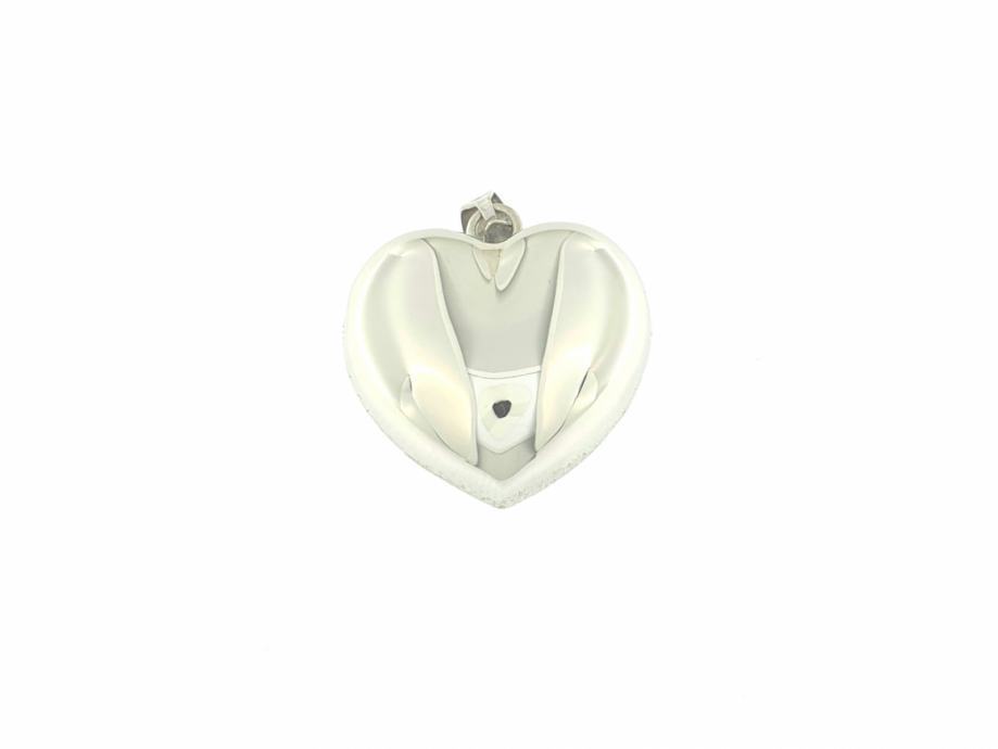 Zlatni privjesak srce, bijelo zlato 14K, žig 585, mat-glat kombinacija, trokutasta karika za lančić.
