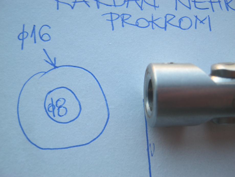 KARDAN UKUPNE DUŽINE 40 mm. SA OBJE STRANE VANJSKI FI 16 mm A UNUTRAŠNJI FI 8 mm.