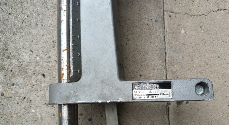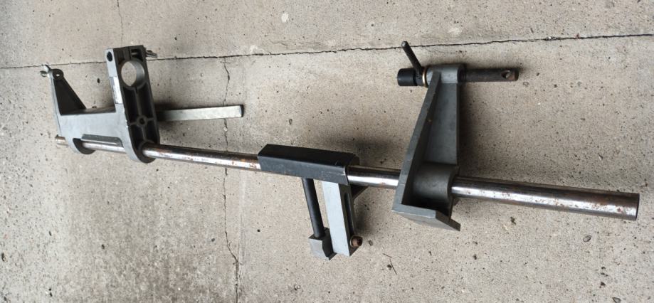 Nosač bušilice Iskra ( fi 42 ) na osovini sa dodacima za izradu malog tokarskog stroja za drvo. Dužina osovine 100 cm. Okretni šiljak sa ležajem i oslonac za nož, sve vidljivo na slikama.