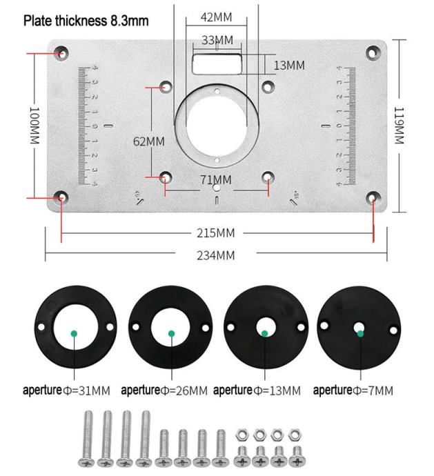Ploča za stol za glodalicu LIVENI ALUMINIJ sa nastavcima