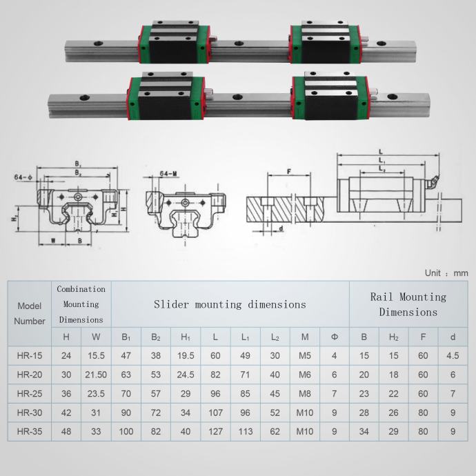Dvije 15 milimetarske vodilice dužine 150 cm i 4 ležaja.