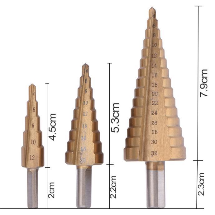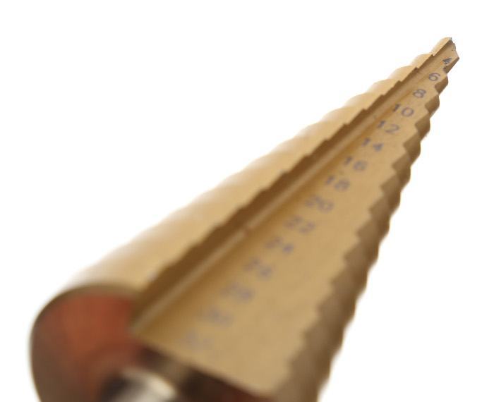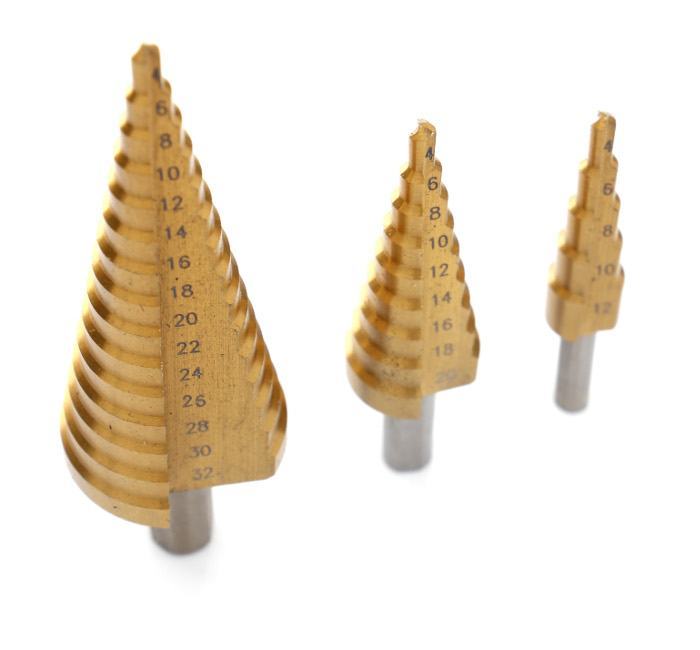 Konusna stepenasta svrdla za bušenje ili razvrtavanje postojećih rupa u raznim materijalima uključujući čelik, mjed, drvo, plastiku, bakar, staklo plastiku i druge materijale.