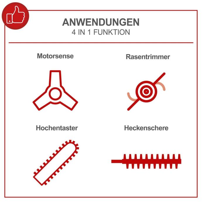 Privitak je uključen: Trimer za živicu, motorna pila, trimer za rub travnjaka, trimer za travnjak