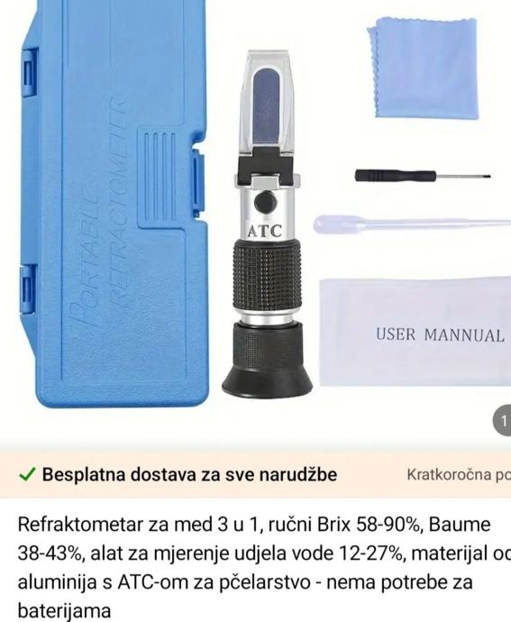 Prodajem nov tester kakvoce meda, refraktor, radi odlicno, ne treba mi vise jer sam provjerio sta sam htjeo, cijena 25€,