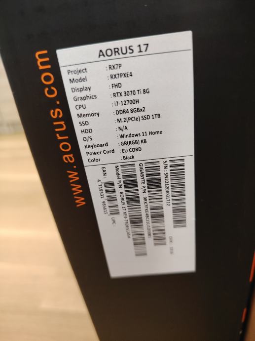 Aorus 17XE (RTX 3070Ti, i7 12700H)