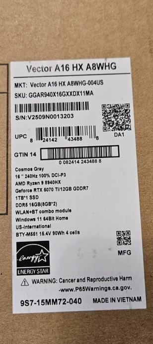 Prodajem MSI VECTOR 16 gaming laptop kupljen prije 10 dana u SAD-u.