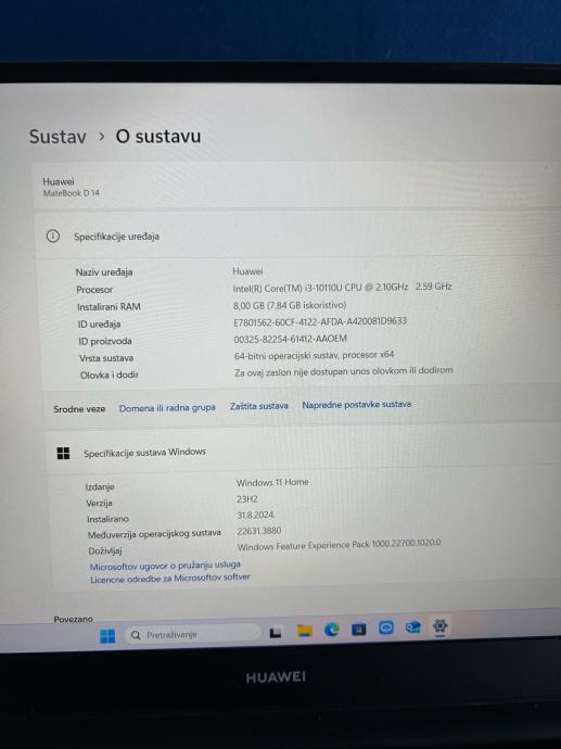 U odličnom stanju. Baterija traje cijeli dan (ovisi za šta se koristi). Korišten dvije godine u fakultetske svrhe (Word, PowerPoint) te za Netflix i slično. Prodajem jer sam prešla na Apple. Punjač je na jednom mjestu oštećen (mačak je zapeo za njega s noktom), ali radi normalno. Na površini laptopa su bile naljepnice pa se na mjestima gdje ih nije bilo vidi malo blijeđa boja.