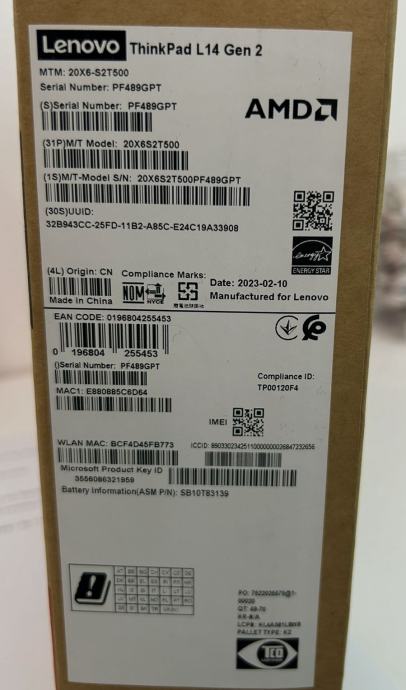Laptop L14 Gen 2 (type 20X5, 20X6) (ThinkPad) – Type 20X6 NOVO !