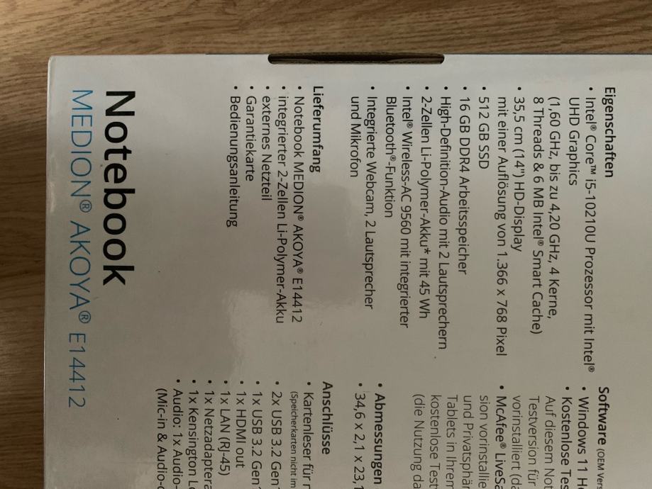 Laptop Medion Akoya E14412, i5-10210U, 16 gb RAM, Windows 11 home