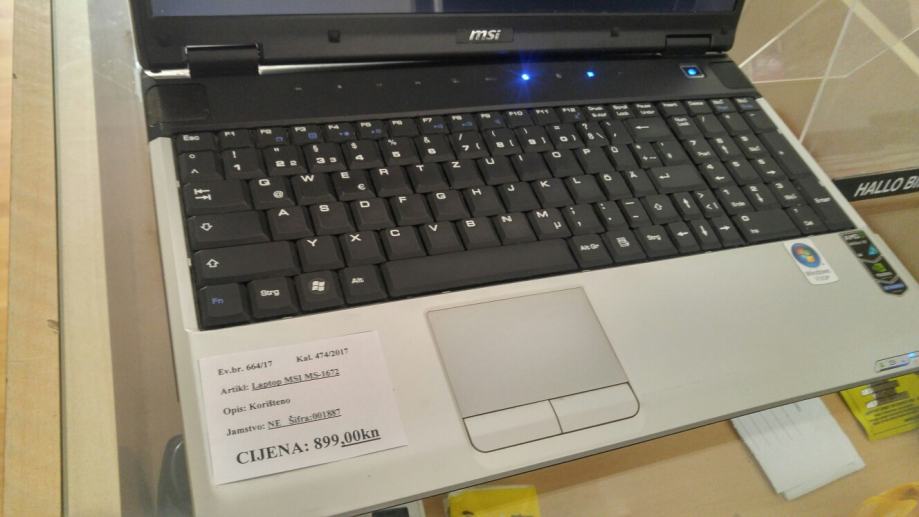 MSI MS-1672...uscuvan i ispravan. Kratke karakteristike: AMD turion X2RM75 2.20