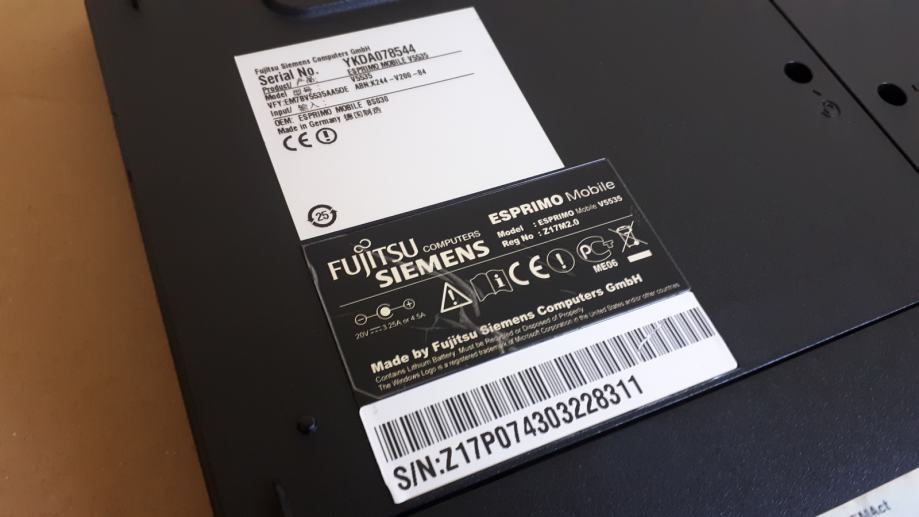 Prodajem laptop Fujitsu Siemens Esprimo V5535, stanje 10/10, ispravan, testiran, instalirani Windows 7/64, RAM 4 GB, procesor Intel Celeron1.7 GHz, HDD 160 GB. Stanje vidljivo na slikama.