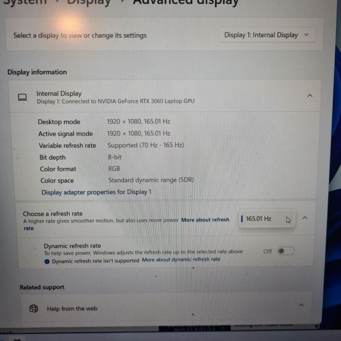 15.6" ekran, 1080p, 165hz refresh rate