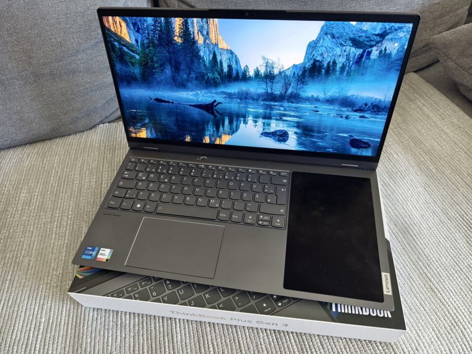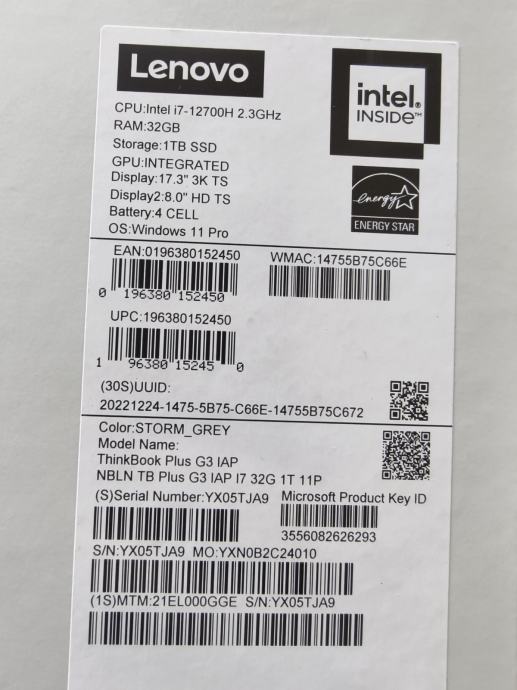Lenovo Thinkbook Plus Gen3 17 inča wide screen laptop sa dodatnim ekranom uz tipkovnicu. i7 12700H, 32GB DDR5 RAM, 1TB Nvme disk, 3072x1440p IPS wide screen ekran + dodatni ekran uz tipkovnicu. Zvijer za produktivnost. Cijena snižena i fiksna. Isti kao ovaj model: www.hgspot.hr/laptop-lenovo-thinkbook-plus-g3-iap-i7-12700h-32gb-1tb-ssd-intelirisxe-17-3-3k-win-11-pro-21el000csc