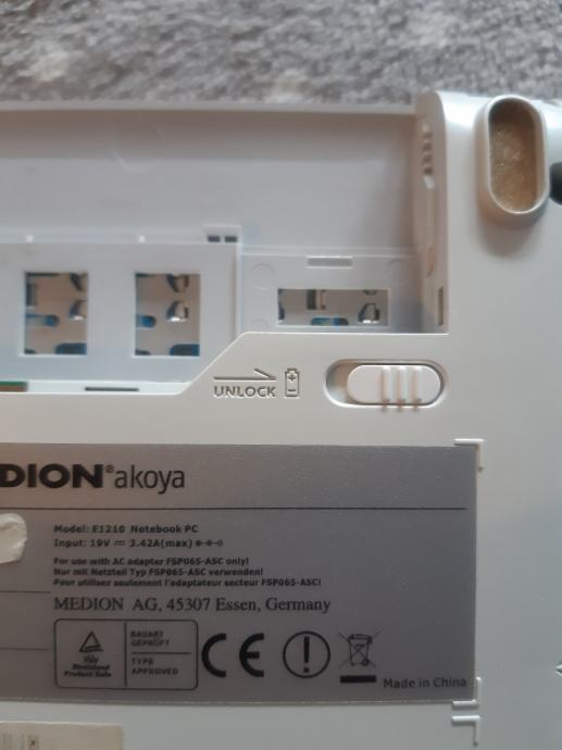 Prodajem mali laptop Medion akoya e1210. Intel 1.6 mhz, 2gb rama, disk 150 gb. Racunalo ispravno, baterija i punjac ispravni.