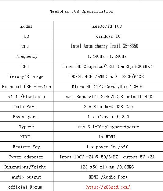 MeeGo Intel ATOM 8350 / RAM 4G / SSD 64G / WiFi / HDMI / USB - C