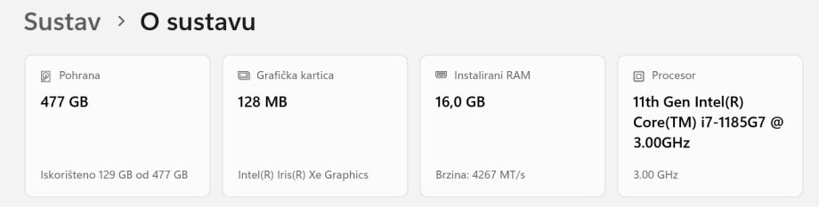 Instalirani RAM 16,0 GB (15,8 GB iskoristivo)