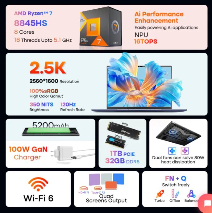 Ninkear A16 Pro (Ryzen 7 8845HS/16gb/1tb ssd)
