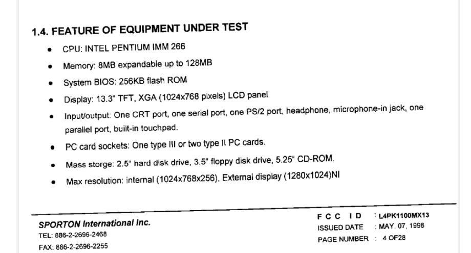 Notebook 13" Retro Vintage 1998g Pentium II 250MB 9GB CDROM FDD
